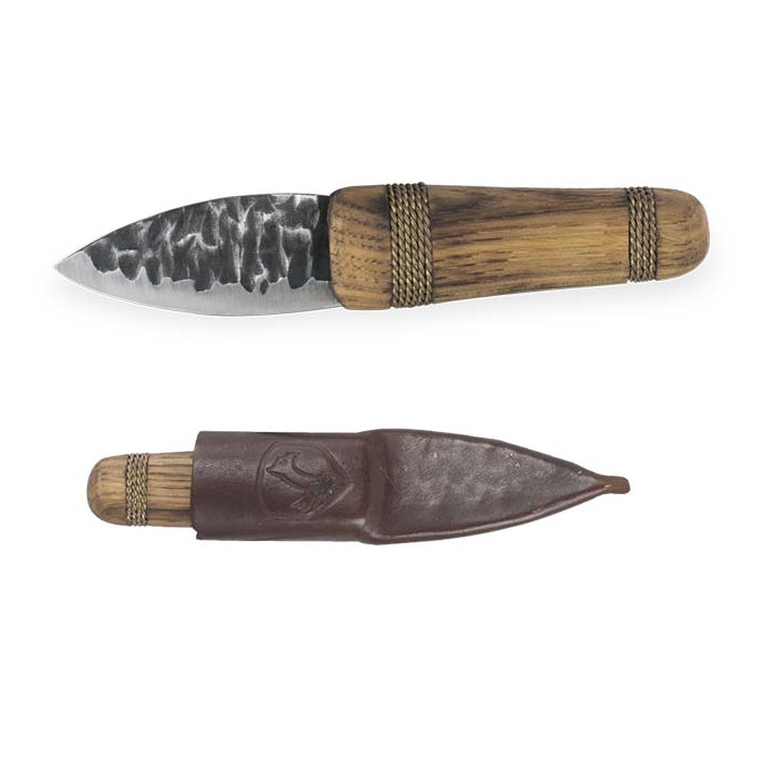 14 cm lång fastbladskniv med handtag av bränd amerikansk hickory, bladstål av 1095 Kolstål och med tillhörande knivslida i läder. Denna kniv har tillverkats för att hedra vårt mänskliga arv, kniven är kallad efter Ötzi, Europas äldsta bevarade mumie. Som verktyg hade ismannen en flintadolk som satt fast på ett trähandtag.