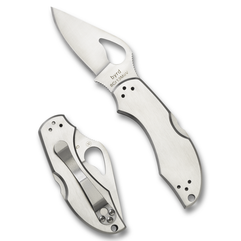 14,5 cm lång fällkniv med handtag av rostfritt stål. Inspirerad av Spyderco Dragonfly.