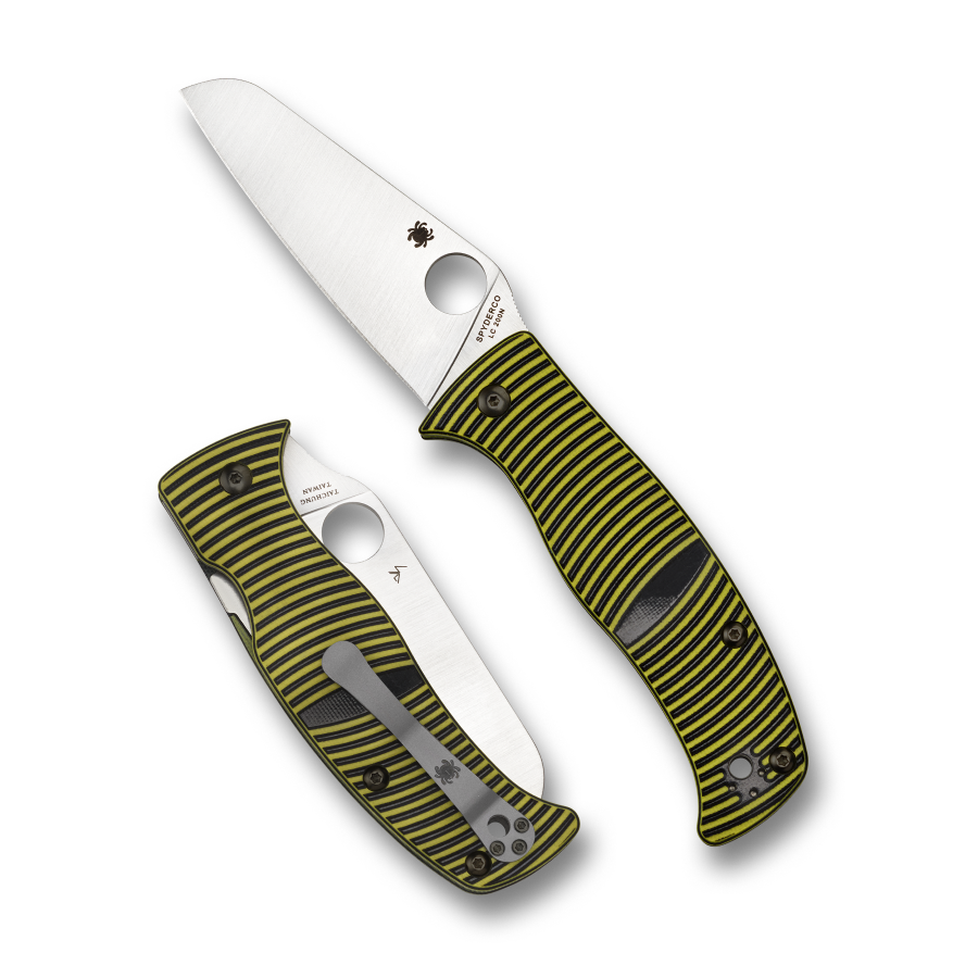 21,7 cm lång fällkniv med handtag av gul och svart G-10 samt stålliners. Bladstålet håller knivens skärpa mycket bra och är 100% rostfri. Går att köpa både med och utan sågtänder (spyderedge och plainedge).