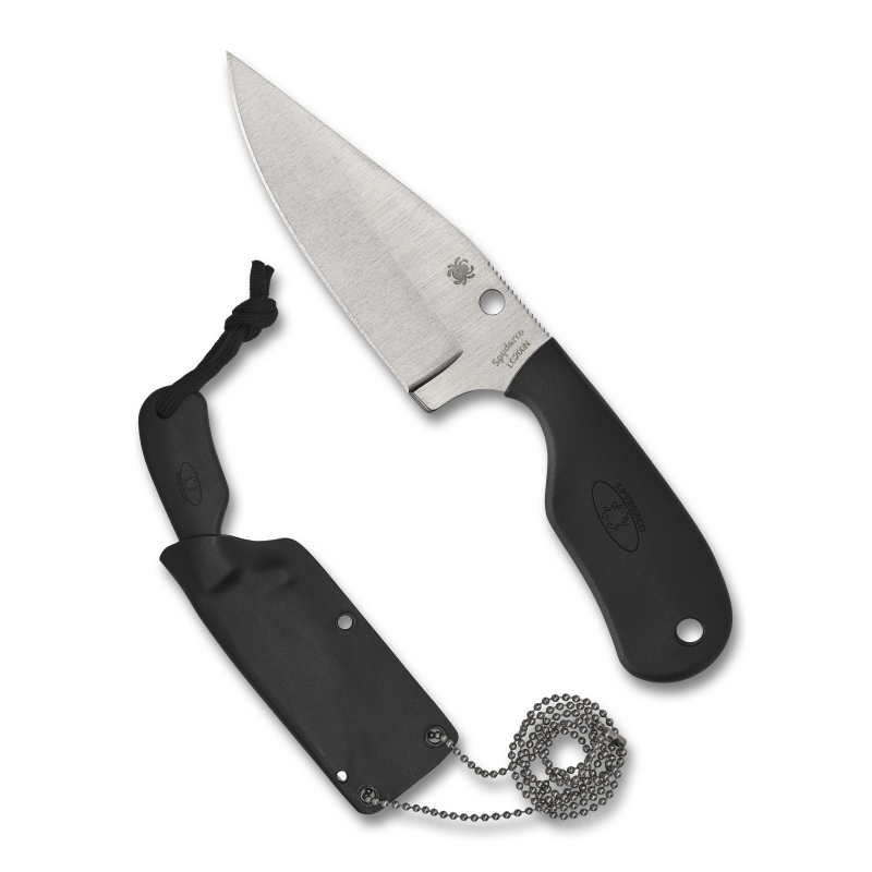 13 cm lång fastbladskniv/neck knife med handtag av FRN designad av Fred Perrin. Mindre fastbladare som du bär smidigt kring halsen i knivslidan.